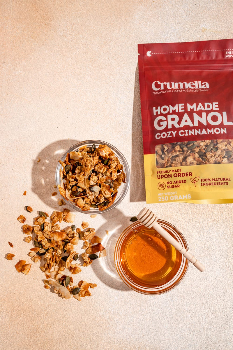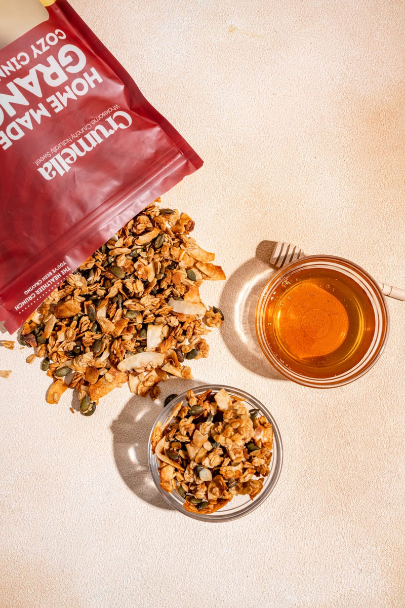 A luxurious, homemade granola made with only honest ingredients, baked in small batches, and crafted with care you can taste in every crunch.