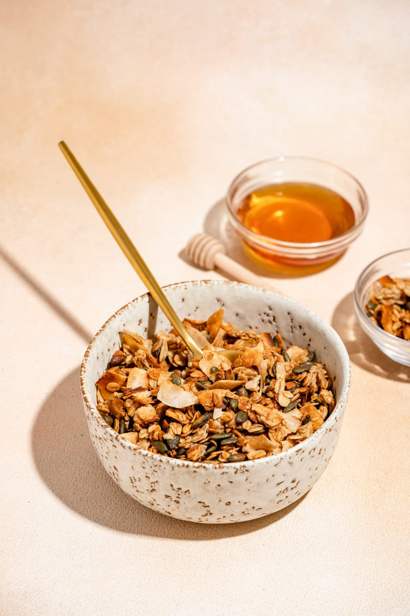 A comforting blend with coconut flakes, pumpkin seeds, and warm cinnamon. Sweetened with honey and baked with nutrient-rich coconut oil.