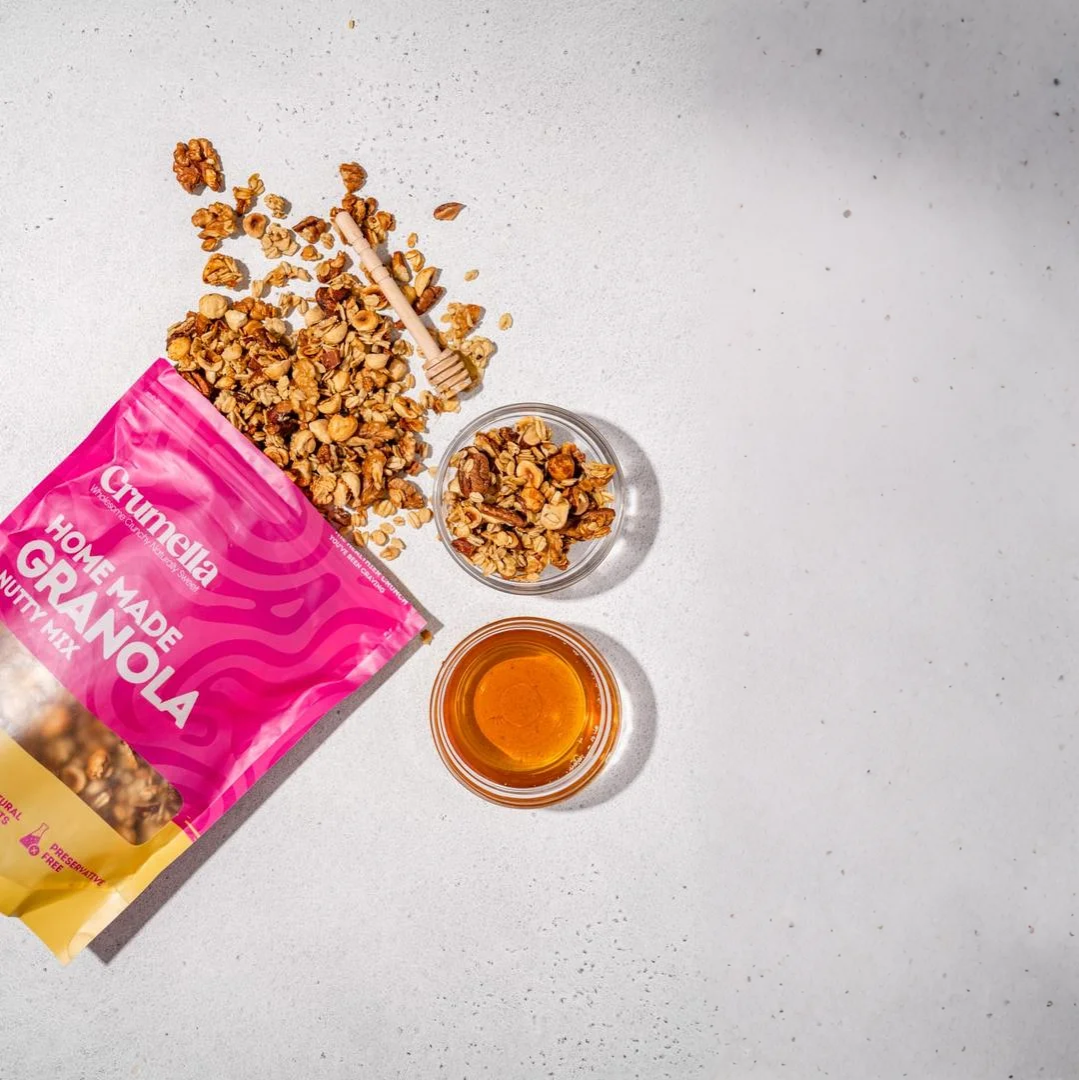 So I started baking my own using real nuts, natural honey, and high protein ingredients, just like I would for my family. It became our daily breakfast, snack, and energy boost,and everyone who tried it fell in love.